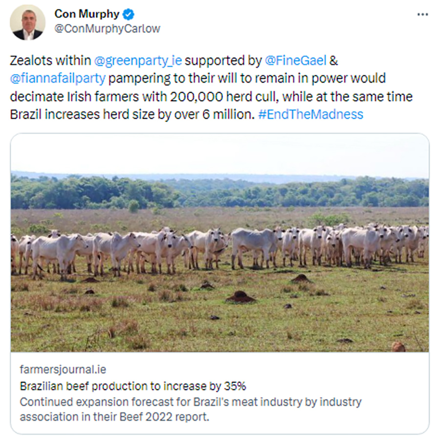 And of course, the production of food from cattle and fish will simply mean that Irish producers are displaced by producers in other countries such as Brazil which, oblivious to the fanatical determination of climate extremists in the west, is actively increasing its own cattle herd by huge numbers.