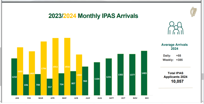 In fact, an IPAS report from July shows that the number expected to arrive this year will smash previous records. In 2022, there were 13,651 applications for asylum in Ireland, while 2023 saw 13,277 additional arrivals. But if the trend to June continues (and it has thus far in July and August), then we should expect that 20,000 migrants claiming asylum will have gone through the IPAS system by the end of 2024.