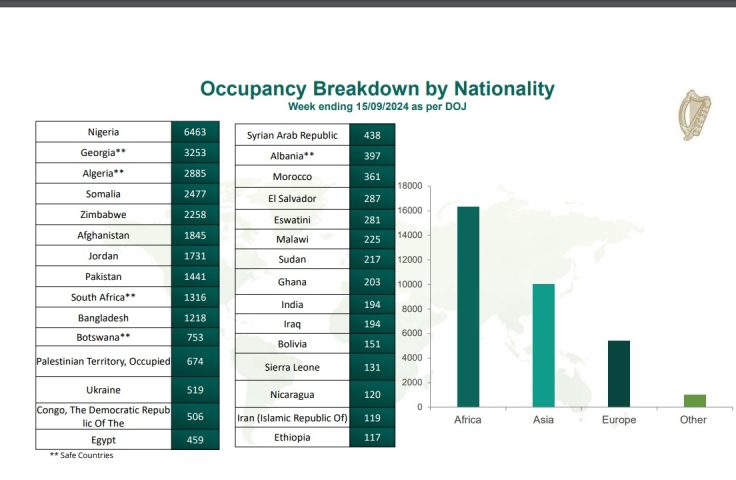 The largest proportion of those living in IPAS accommodation are, in fact, from Nigeria, with about 20% of all accommodation occupancy filled with that nationality. Another 10% are from Georgia, now designated a “safe country” by the Irish government, with similar numbers also being housed from Algeria.