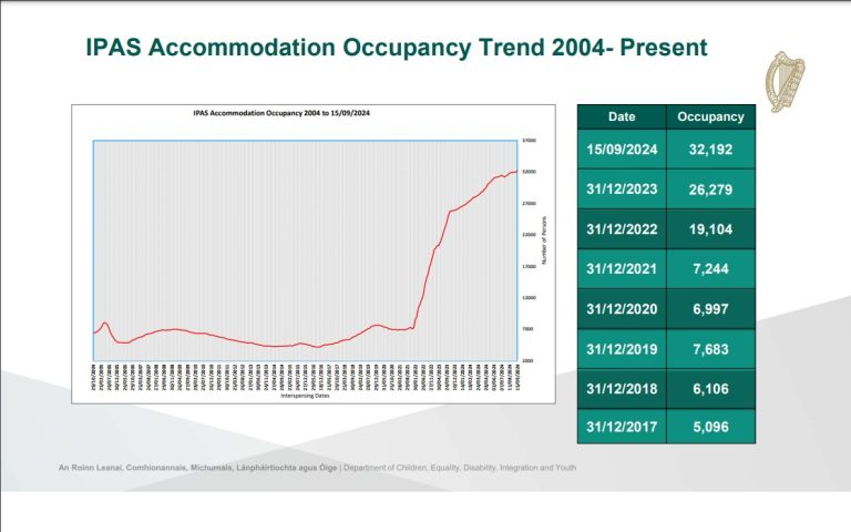 According to the latest report from International Protection Accommodation Services (IPAS), another 385 applicants arrived in the week ended 15th September, bringing the number of people now living in asylum accommodation in Ireland to a number close to the entire population of Navan.