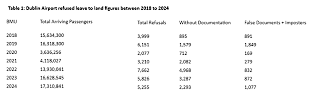 A response to a Freedom of Information request from a reader of Gript has revealed that the number of people presenting at Dublin Airport with false documentation or no documents will remain at around the same level as 2024.