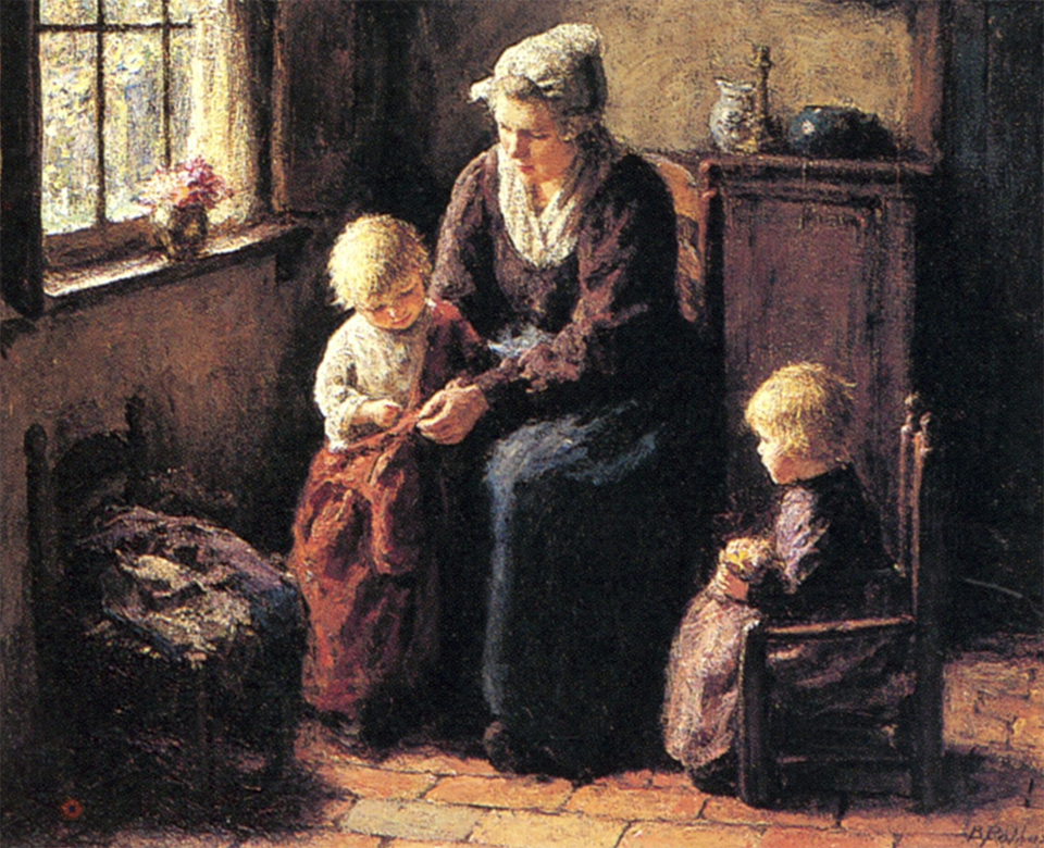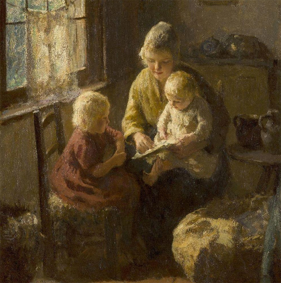 There is nothing new in challenging children or giving them responsibility or whatever the X experts like to say. One painter I like is the Dutch painter, Bernard Jean Corneille Pothast,1882-1966. “Pothast’s scenes are highly moralistic, extolling the role of the mother in educating and shaping the future generations.” He painted rustic images of a mothers instructing her young daughters in tasks around the house. However, mother also taught them to read, see this beautiful painting, The Reading Lesson.