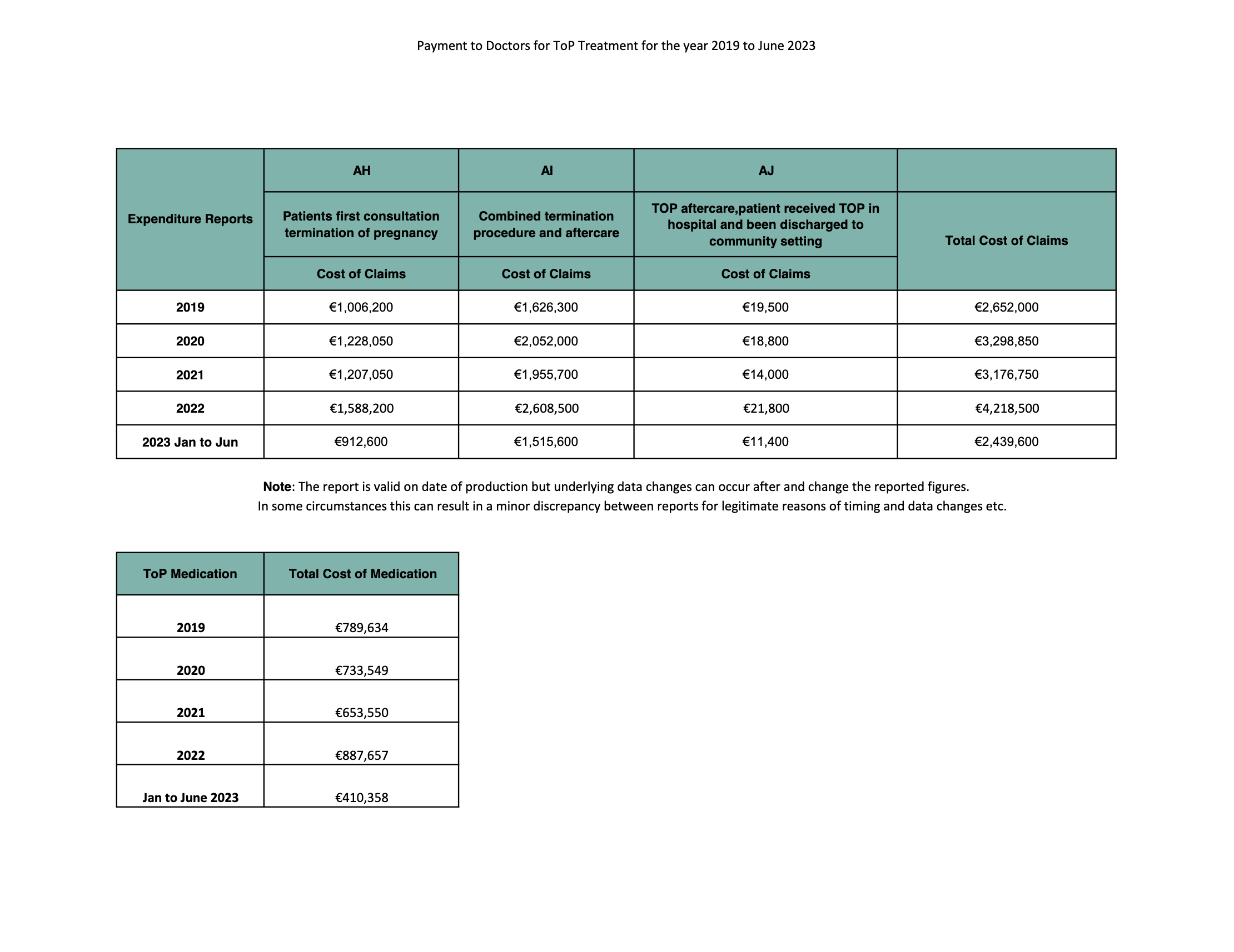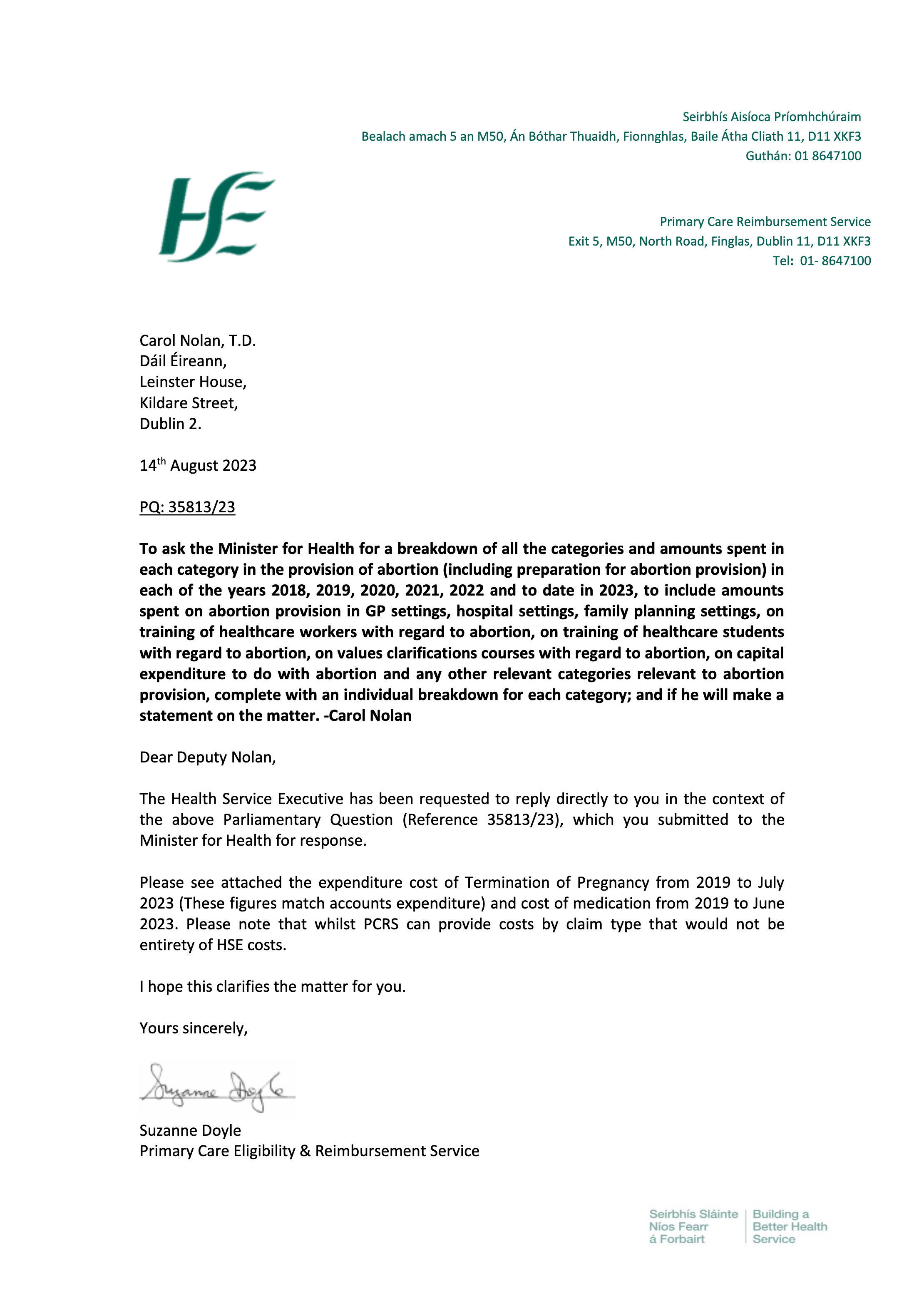 Data released to Carol Nolan TD from the HSE suggested that more than 5,000 abortions have already been carried out in between January and June 2023. The HSE told Deputy Nolan that €1,515,600 had been spent over that six month period on ‘combined termination procedure and aftercare’.