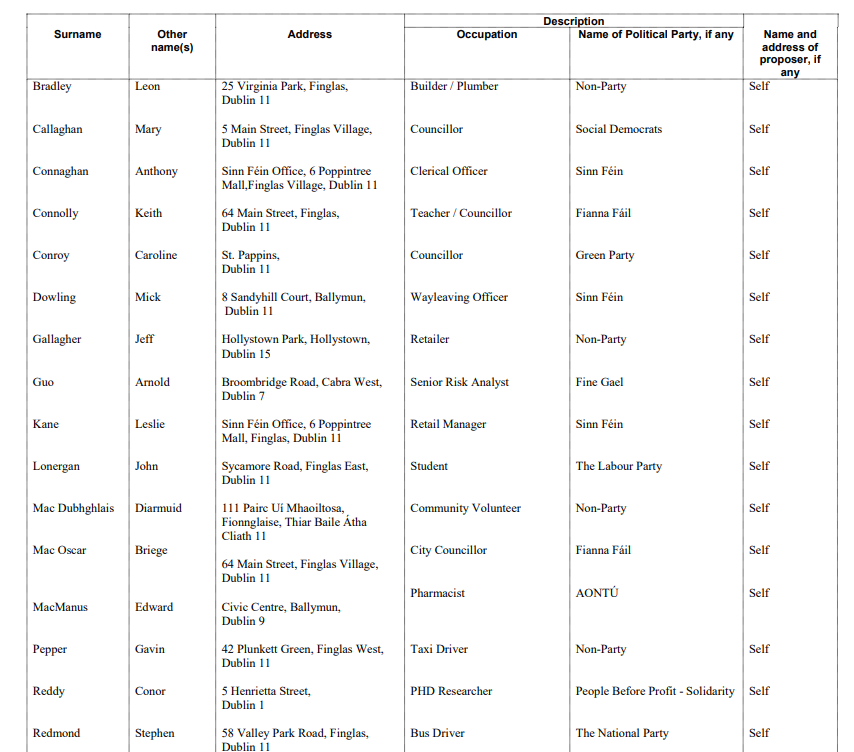 There are 16 candidates on Friday’s ballot paper. The only non-incumbent from 2019 who is putting themselves forward again is Diarmuid Mac Dubhghlais who took 261 first preferences as a candidate for Republican Sinn Féin the last time and who appears to be part of the independent left grouping that supports European MEP Clare Daly.