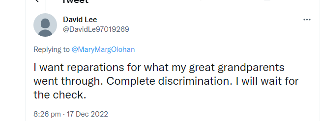Others regarded it, facetiously, as an opportunity to get in on the reparations debate.