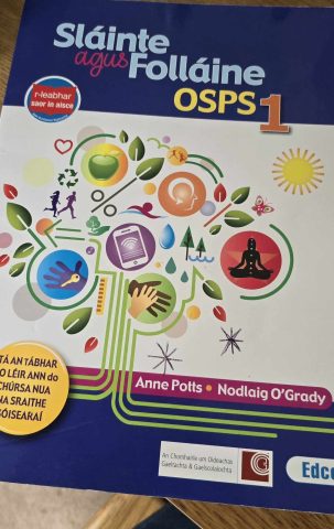 “Sláinte agus Folláine OSPS 1” is the version as Gaeilge of the contentious Health and Wellbeing schoolbook. However, it does not include the inclusion chapter and the depictions of Family A and B which have led to such controversy.