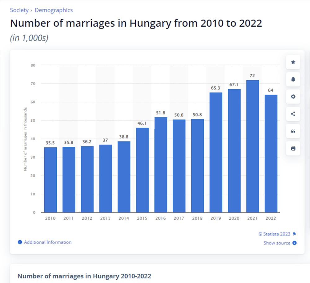 Some of the recent marriage and birth statistics show stagnation, however this is likely due to Hungary’s recession and the country’s steep inflation rate, caused by factors such as COVID, higher energy prices, and a severe drought in Hungary last year.