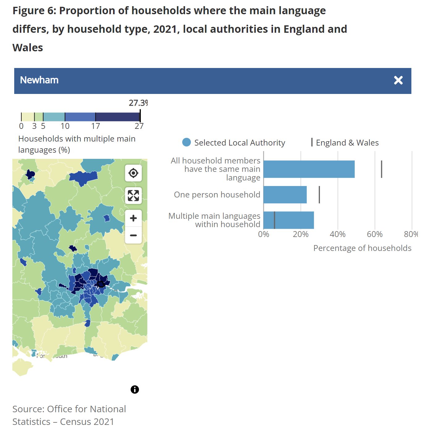 In addition, Leicester and Birmingham became the first UK cities to have “minority majorities”. The most foreign speaking constituency was Newham where 27.3% of people speak a different main language.