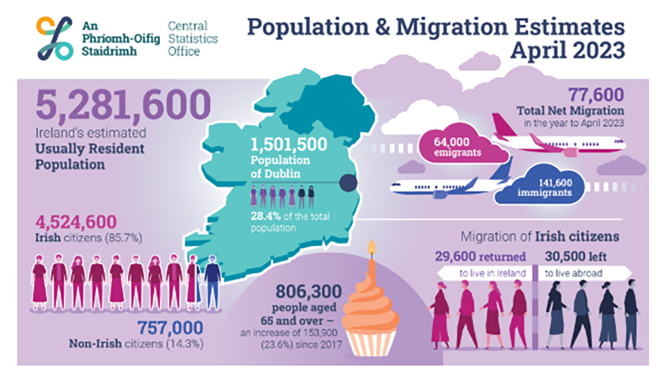 Firstly, the population has already increased by an average of more than 90,000 per year since the CSO forecast. Bearing in mind that the increase in the year since the Census was estimated at more than 130,000 and that there was very little migration comparable to trends during the two years of the Covid restrictions.