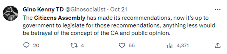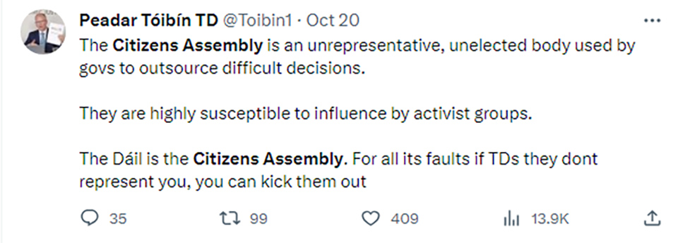 As for the Citizens’ Assembly as a concept, I am with Peadar TóibIn on this matter.