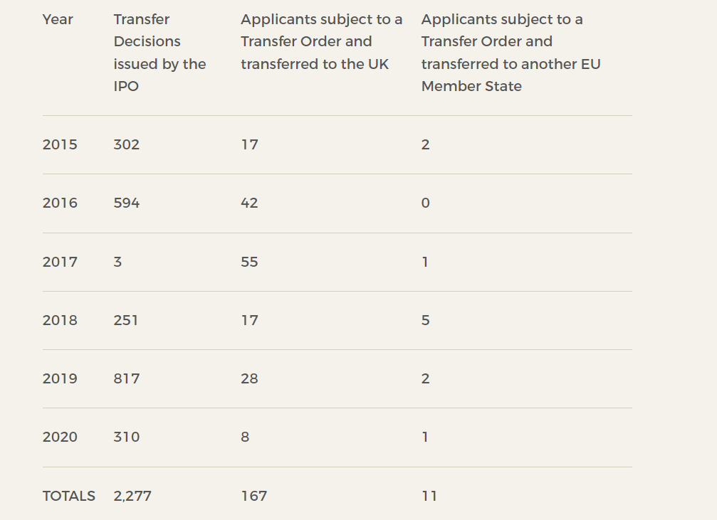 The sheer scale of the weakness of the application of Dubin III here is in any event illustrated by the fact that of 2,277 transfer decisions issued by the International Protection Office between 2015 and 2020, that just 178 or less than 8% ended in the person being transferred to another EU member state.