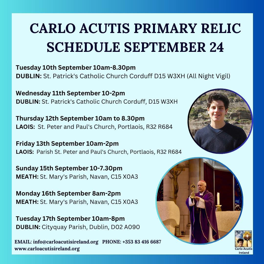 St. Patrick’s Parish in Corduff will welcome the Relic of the Italian teenager this Tuesday 9th September and Wednesday, 10th September.