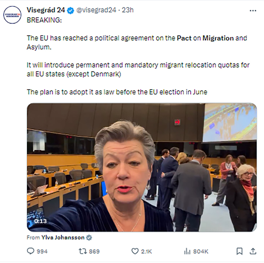 Their biggest motivator is likely that they know that they have lost the room on the issue. It is interesting then that the official spin on the Migration Pact agreed yesterday between the European Parliament and the European Council of Ministers is that this will allow greater national controls. Minister for Justice, Helen McEntee, welcomed it as striking “an important balance between effective asylum and return procedures and protections for those seeking protection who are the most vulnerable.”