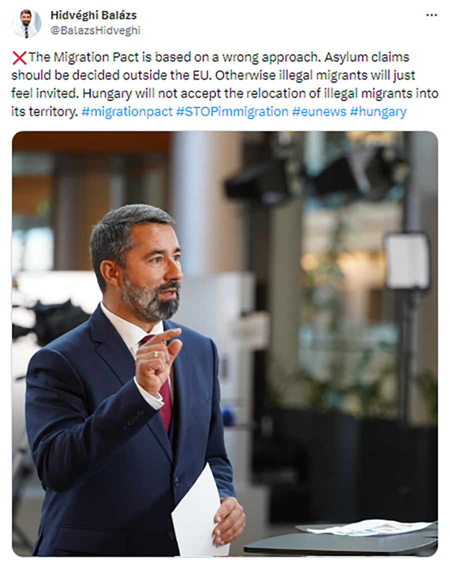 Hungarian Fidesz MEP Hidveghi Balazs reiterated their demand that all asylum claims should be made and processed outside of the EU. In other words, that each European state would have the right not to admit anyone who was not properly adjudicated and approved prior to arrival. Failing that, that each state gets to decide who may be granted protection. Nor ought any state be forced to take migrants or penalised for failing to do so.