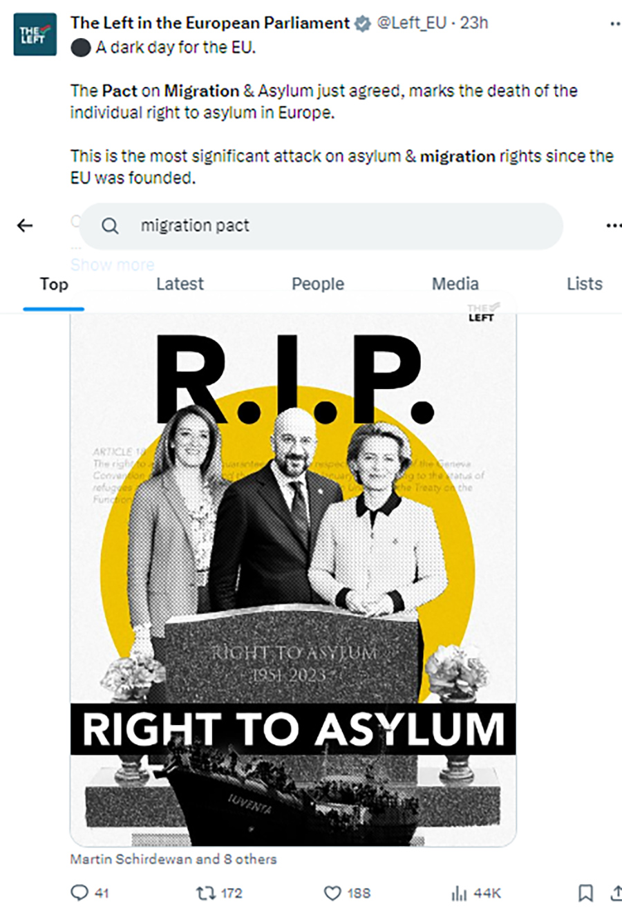 Among those condemning the Pact as “attack on asylum and migration” rights are the European far left communist and green dominated grouping to which Sinn Féin MEP Chris McManus belongs. The GUE/NGL group are opposed to the Pact because they believe that it represents a barrier to the open borders policy that they wish to see imposed across the whole of the EU.