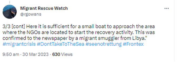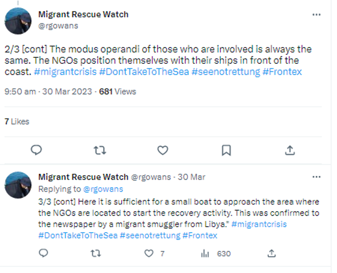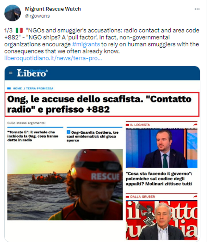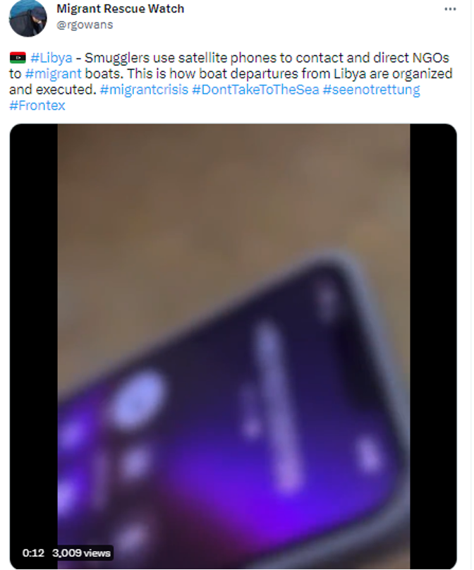 This appears to show how the criminal gangs make contact with the “rescue” ships which take on the people carried by the gangs from north Africa, and in particular from Libya, and thus attempt to avoid immigration and other legal controls by providing the sordid operation with the cover of “humanitarianism.”