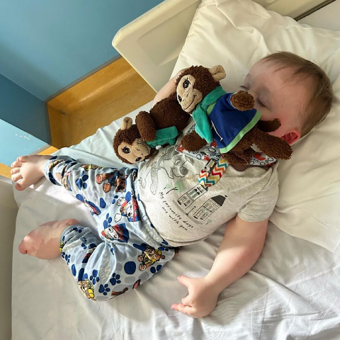 As a small baby, Axel returned to hospital a further 16 times – 11 times for cellulitis which resulted in sepsis on multiple occasions, bowel blockage due to malformation resulting in needing a tube for feeding, and cellulitis and cystic lesion of a lipoma on his back. At this stage, the small boy was unable to lie down or sit against anything for two full weeks without requiring morphine.