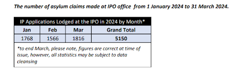 According to the Department of Justice, the total of asylum applications made in the months of January, February and March was 6,273. The figures for the same period published by IPAS record that there were 4,867 arrivals into the state over that period.