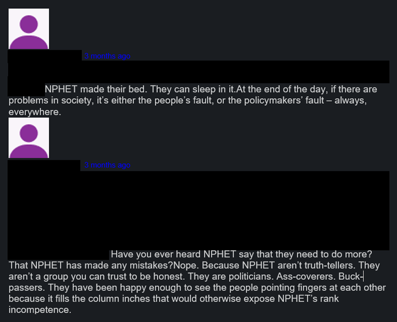 NPHET, according to ISAG, “isn’t a group you can trust to be honest” but rather one whose “rank incompetence” had not yet been exposed only due to the fact that NPHET are “politicians. Ass-coverers.”