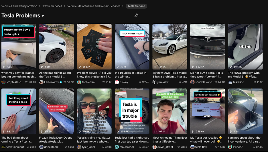 A reduced resale value is also associated with poor quality. For all the hype about EVs being a sophisticated technology, the product experience is often plagued by malfunctions and shoddy manufacturing. Consumer Reports found that EV owners had about 80 percent more problems than non-EV owners. As EV adoption increased, these problems have been showcased across social media and have racked up millions of views. Issues concerned the battery, charging, software, and even basic things like doors not being fit properly.
