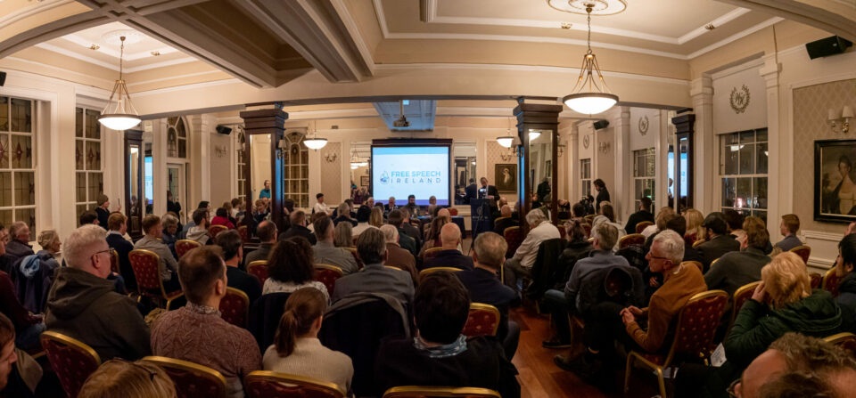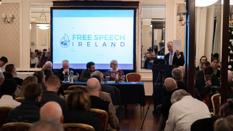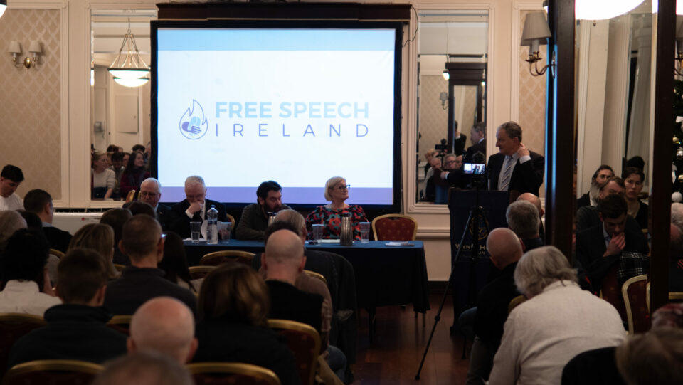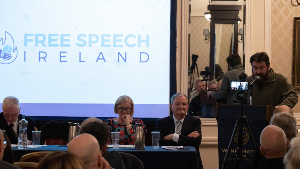 People gathered in Dublin to discuss the implications of Helen McEntee’s hate speech law. Speakers include Senator Sharon Keogan and Prof. Gerard Casey and Mattie McGrath TD. Organised by Free Speech Ireland the proposed law has been described as “chilling”