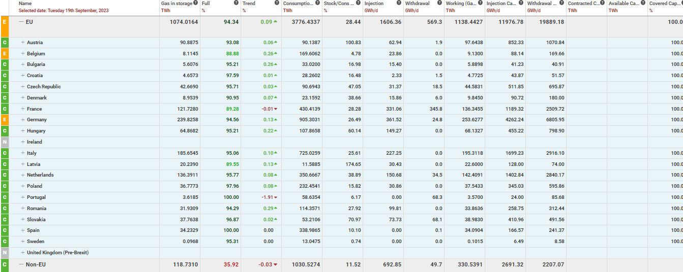 Ireland is the big gap in the middle below. The EU is at over 94% storage and every member state other than Ireland is at close to 90% or over.