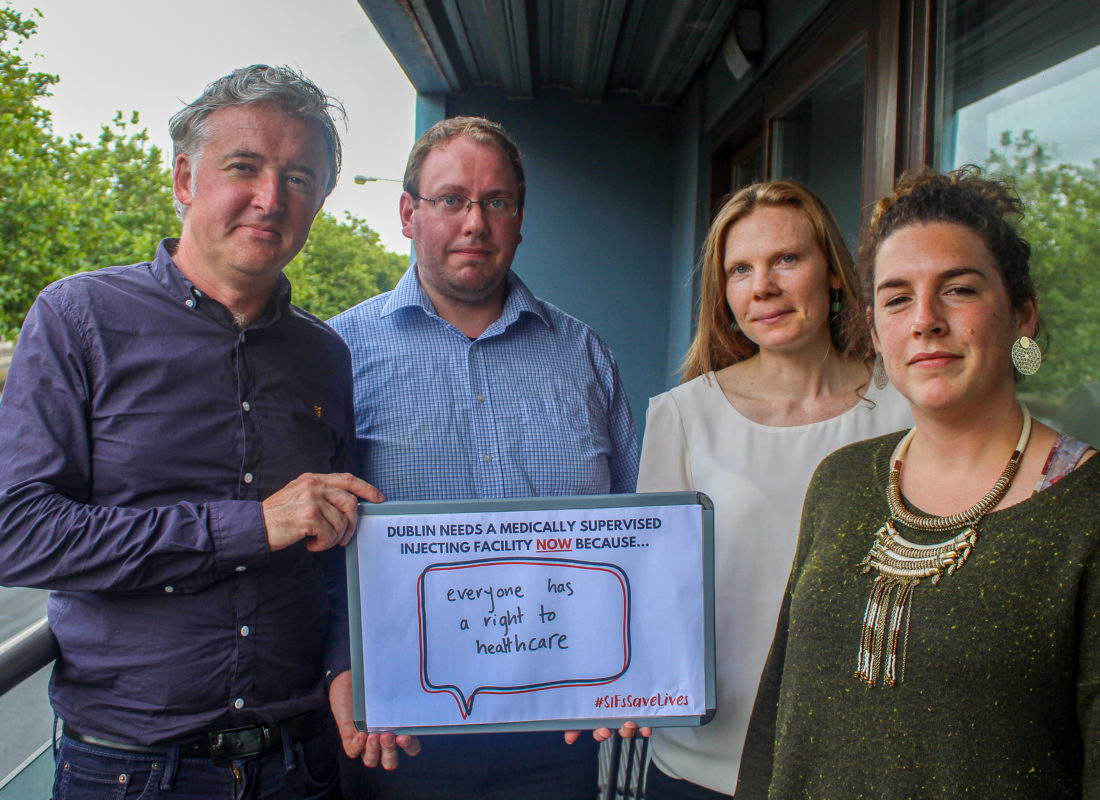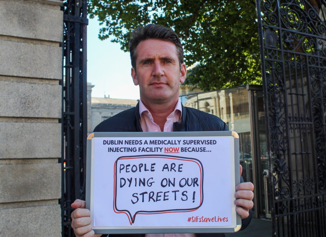 Michael Pidgeon, Green Party Cllr for Dublin’s South West Inner City, supporting the injection centre