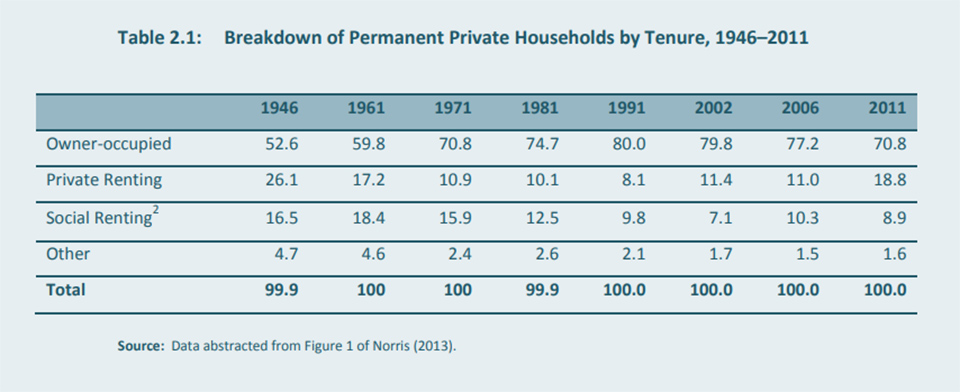 The new state, and in particular successive Fianna Fáil governments up to the 1990s had made the expansion of home ownership a central political and social aim.