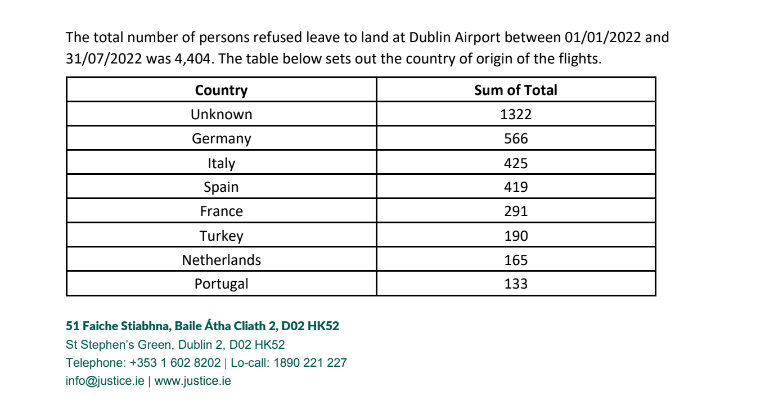 Well, according to a new FOI seen by Gript from the Department of Justice, between January and August of this year, a whopping 4,404 of people entering Dublin Airport were initially refused the right to pass through immigration into the country. And of these, 1,322 had their country of origin recorded as “unknown.”