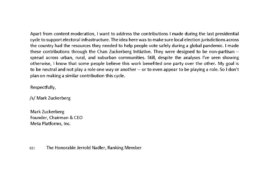 Mark Zuckerberg, CEO of Meta/Facebook, has written a remarkable letter to the chairman of the Republican House Committee on the Judiciary, laying bare actions of the U.S. federal government which represent an extraordinary attack on the freedom of speech of U.S. citizens, and declaring that “we’re ready to push back if something like this happens again.”
