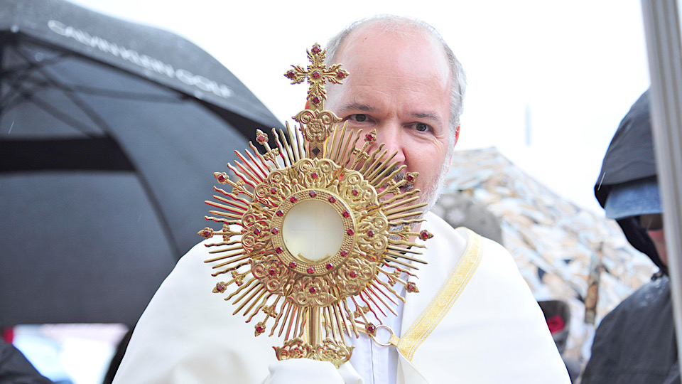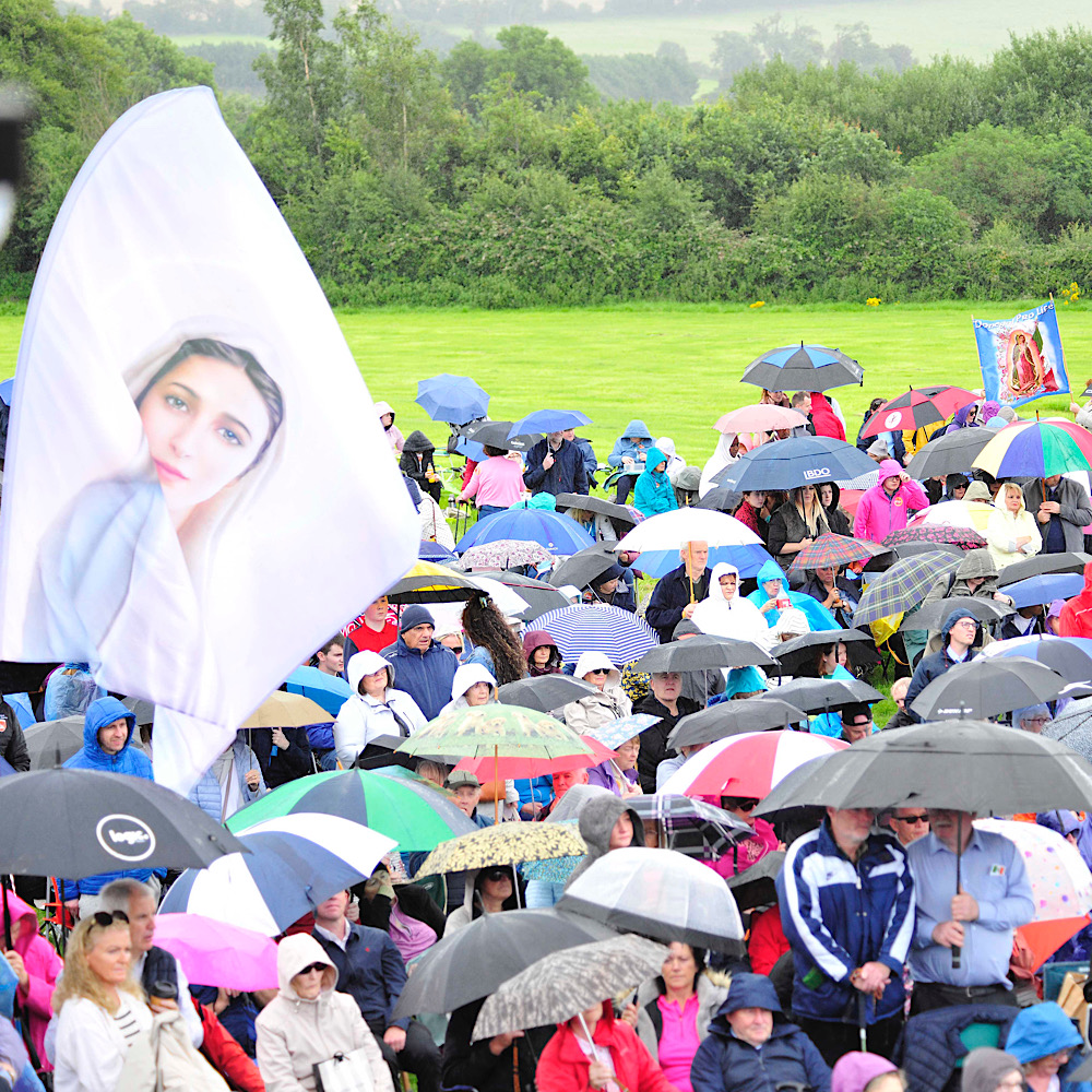 Despite the heavy showers, more than 3,000 people climbed the hill to participate in the event spanning almost five hours of praise and worship, rosary, and Mass – with a special ceremony recalling how St Patrick lit the fire of faith in Slane in 433AD.