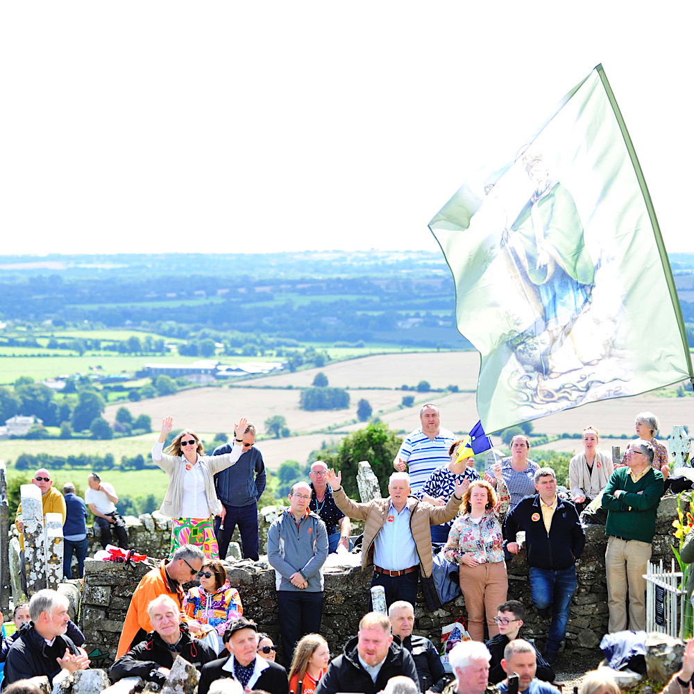 Archbishop Eamon Martin joined priests from dioceses across the country to celebrate Mass on the thronged hill, next to the ruins of a Franciscan Monastery, dating from 1512, itself built on site of a monastery founded by St. Erc, a follower of St. Patrick.
