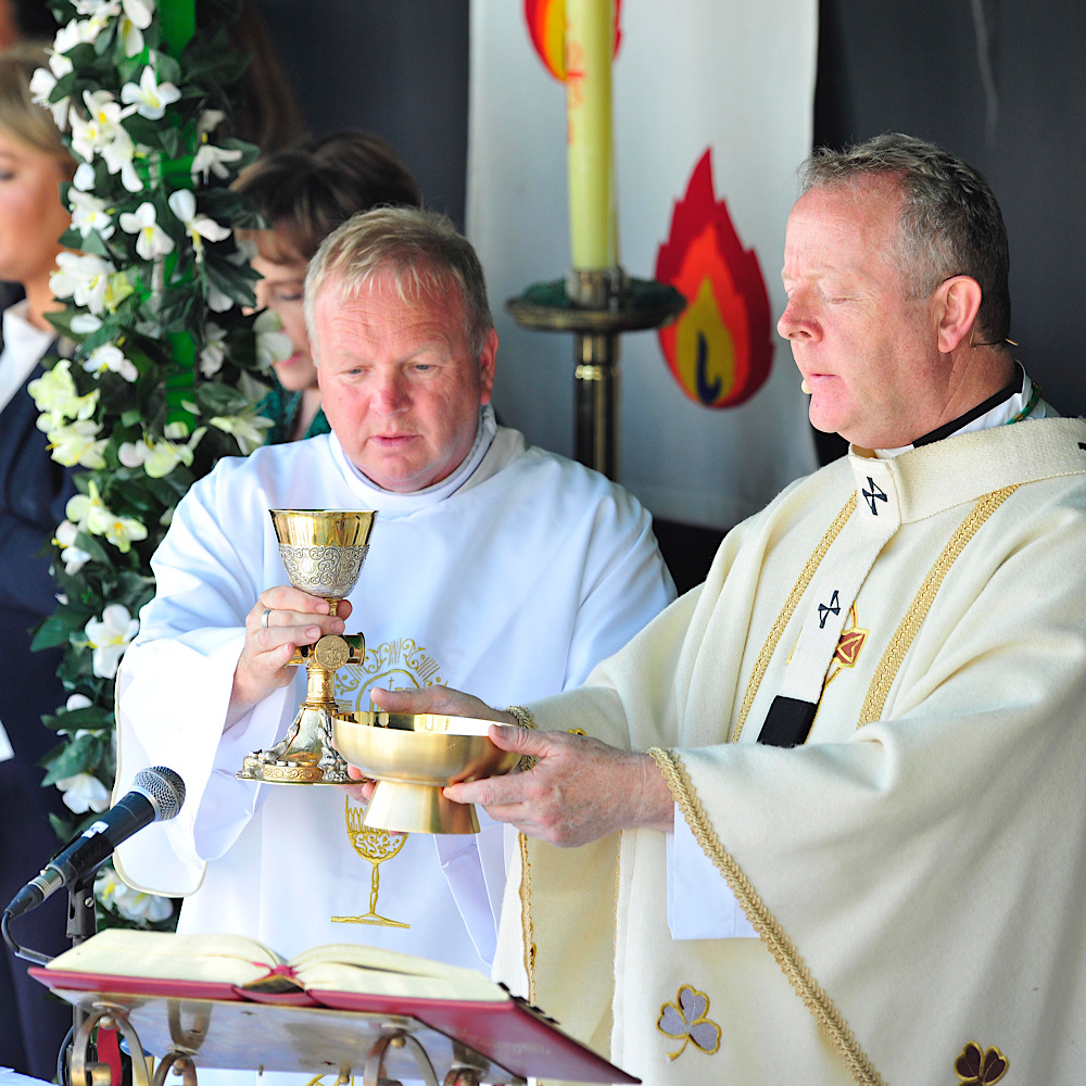 Thousands of people joined in a special open air Mass celebrated by Archbishop Eamon Martin at a ‘Light the Fire’ event with famed singer and former MEP, Dana Rosemary Scallon, on the hill of Slane last weekend.
