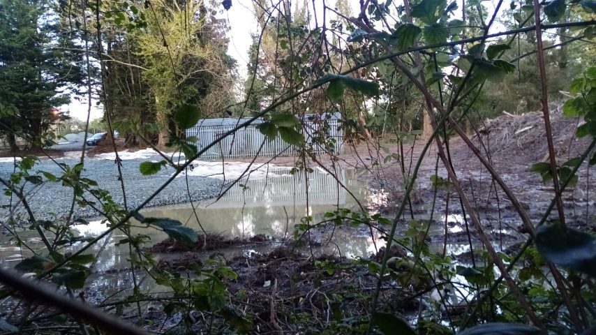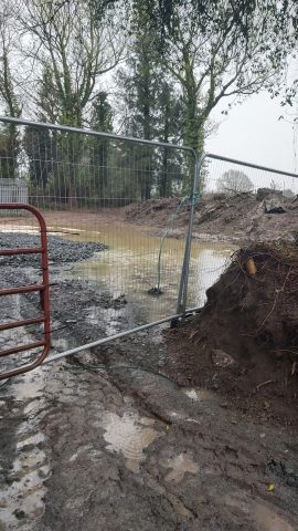 Photos of the site obtained by Gript show large sections of the grounds partially submerged after substantial rainfall over the weekend.