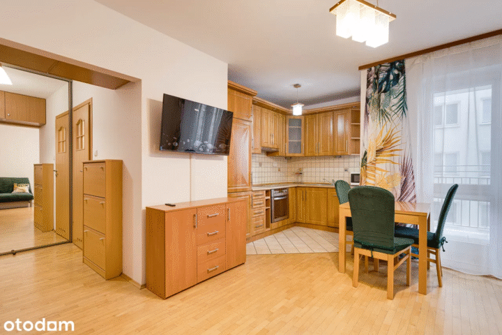 The Polish listing, posted on the Otodom Polish property website, features a separate bedroom plus living room with open kitchen and is located within 15 minutes’ drive of the city center.
