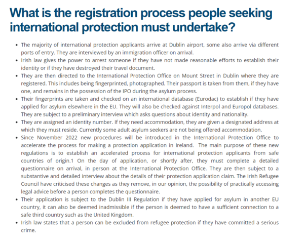 The IRC’s previous explainer on their site claimed that international protection applicants are: