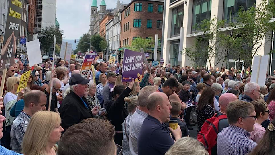 A protest in Belfast over the weekend drew cross-community support for calls to stop the introduction of controversial changes to relationship and sexuality education (RSE) in Northern Ireland’s post-primary schools.