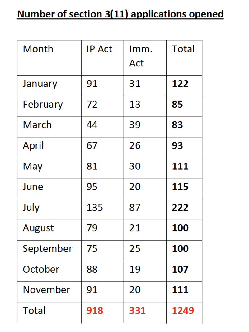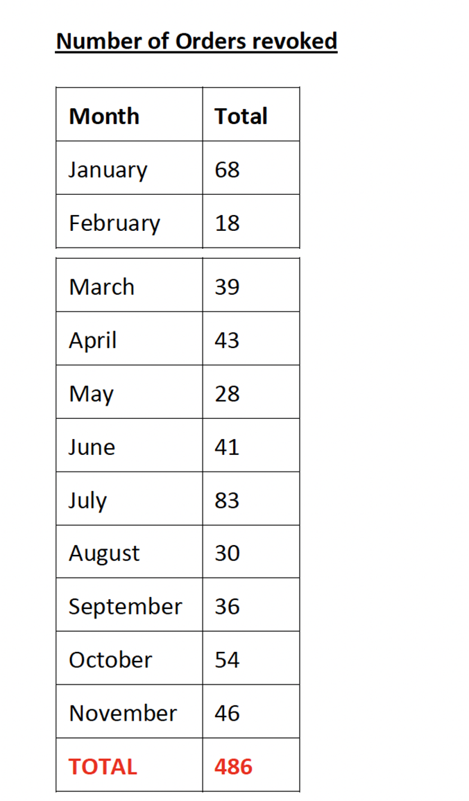 The figures show that in the period between January and November that the Minister issued 4,228 deportation orders and that 486 were revoked. Which means that 11.5% of the deportation orders were overturned.