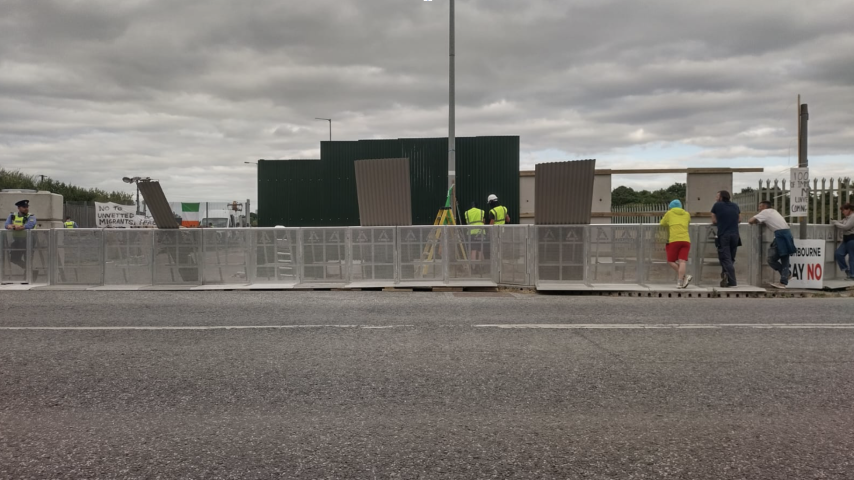 Armed members of An Garda Síochána were also observed on site as masked workers were seen erecting concrete barriers.