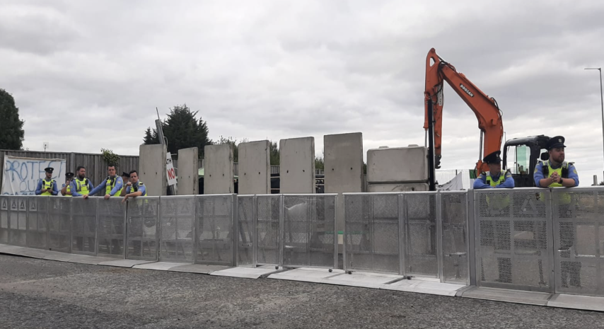 Describing the Garda presence on site today as “massive”, he said that the erection of the concrete wall panels “would remind you of the Berlin wall”.