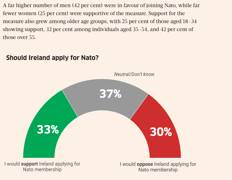At the weekend, the Sunday Business Post published its regular Red C opinion poll. A little-noticed question in that poll asked whether Irish voters would support joining NATO. The results were eye-opening: