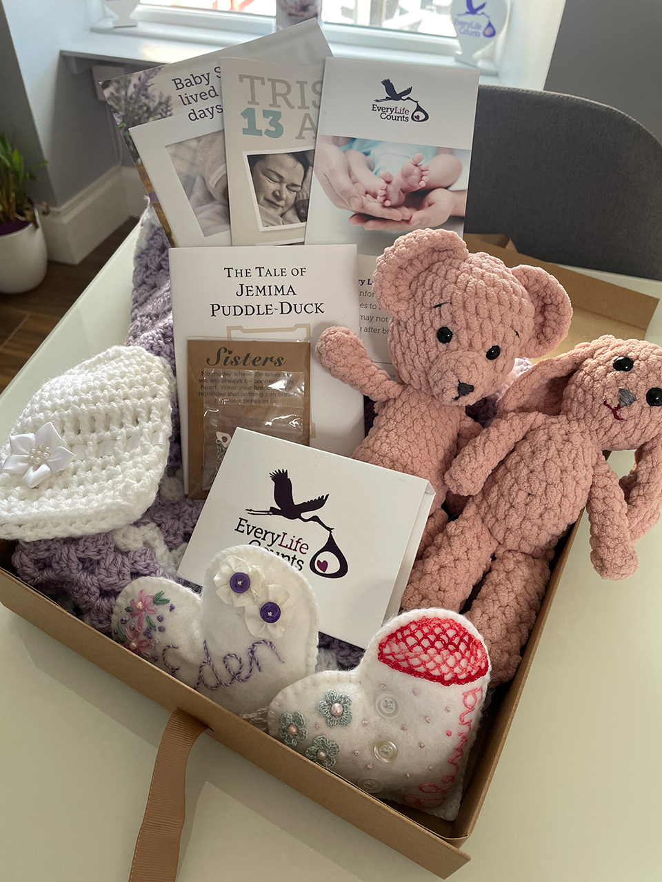“When parents get a diagnosis that tells them baby might not live for long after birth, the shock is enormous,” she says. “But knowing that every minute is so precious makes memory-making so important, and we try to support that in any way we can with providing footprint and handprint kits and other memory making items, and encouraging families to make the most of every minute, of every day.”