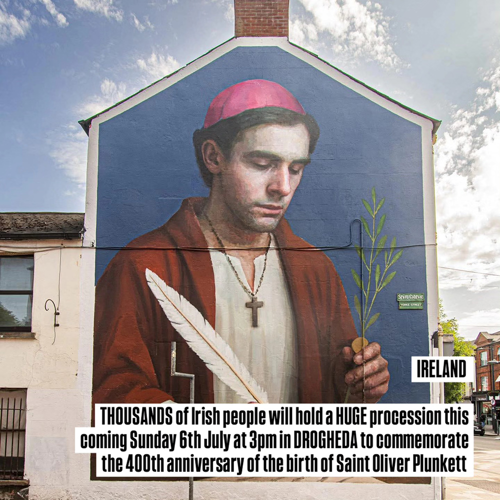 Beidh na mílte daoine ag glacadh páirte i mórshiúil Dé Domhnaigh beag seo 6 Iúil ar 3 i.n. chun comóradh a dhéanamh ar 400 bliain ó rugadh Naomh Oilibhéar Pluincéad. Beidh an mórshiúil ar siúl i nDroichead Átha, mar a gcoimeádtar a cheann i scrín in Eaglais Naomh Peadar sa bhaile sin.