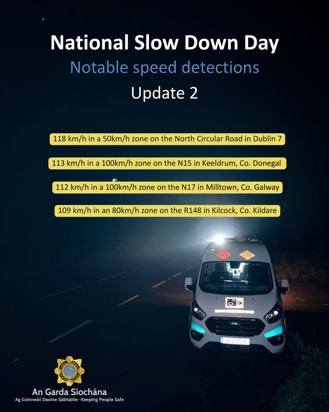 A National Slowdown Day organised by An Garda Síochána, in partnership with the Road Safety Authority (RSA) and other stakeholders, is continuing to take place tonight.
