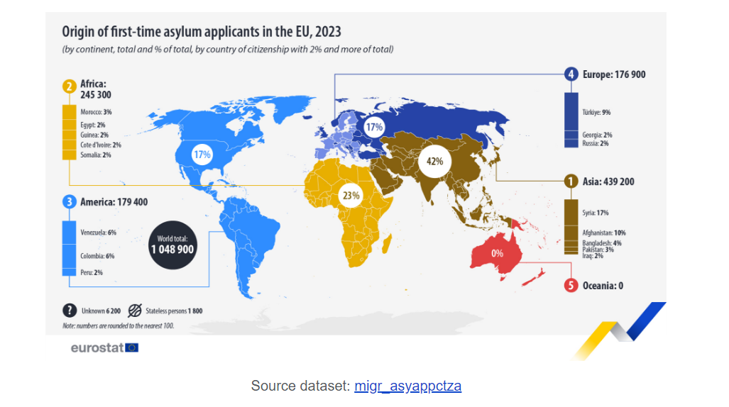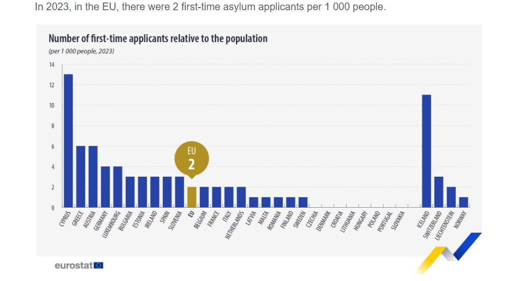 The statistics on new asylum applications within the EU were published yesterday.. They show a huge increase in the numbers of persons applying within the 27 member states, an upward curve that shows no sign of slowing, as has been evidenced in the sharp and steadily increasing numbers in the Irish state since the beginning of 2024.