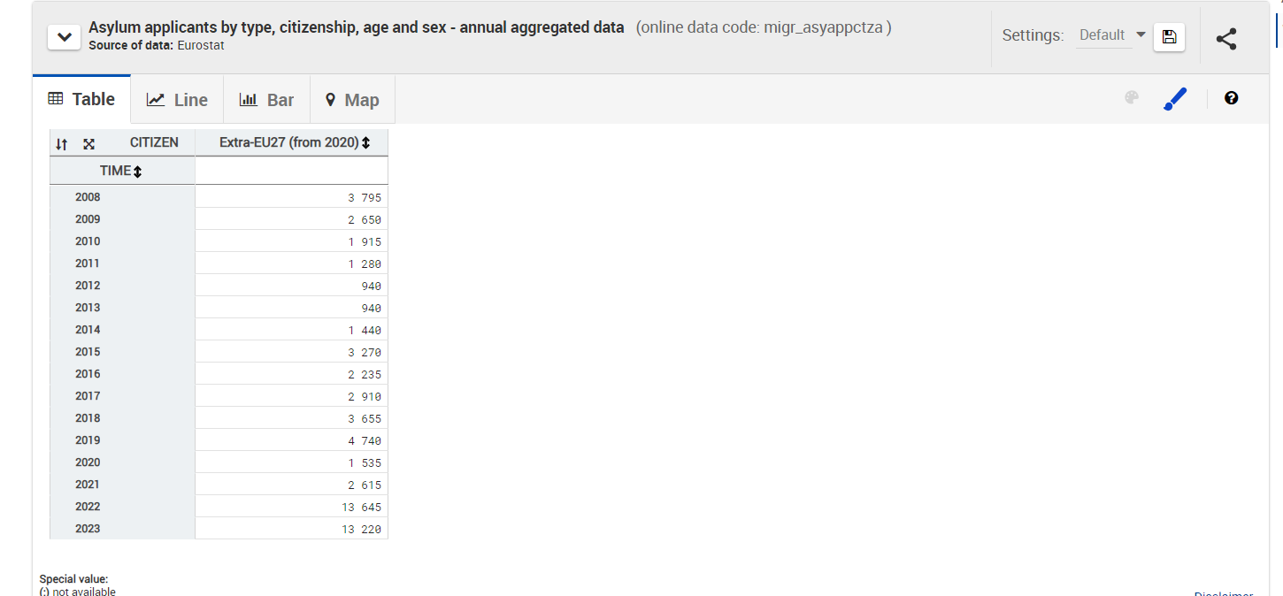 The overall trend in applications for asylum within the EU can be seen here – as illustrated by the table below which contains the annual number of new applications to the International Protection Office in Dublin since 2008 – which shows a similar pattern although official figures here indicated that there had been a slight drop in the numbers of new applicants, of 425 between 2022 and 2023.