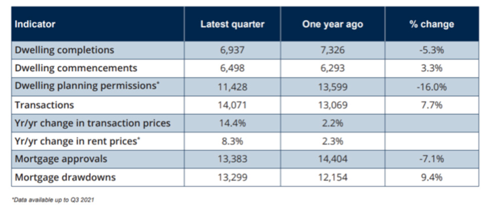 The figures for the final months of 2021 show that there was a negative trend across most of the key indicators. It will be noted in particular that the figures from the third quarter of 2021 showed a significant increase in both year-on-year house prices and rents. There is no sign that this is slowing, and indeed it is likely to increase again given the difference between mortgage-backed demand and housing supply, and also by the demand for scarce rental accommodation.