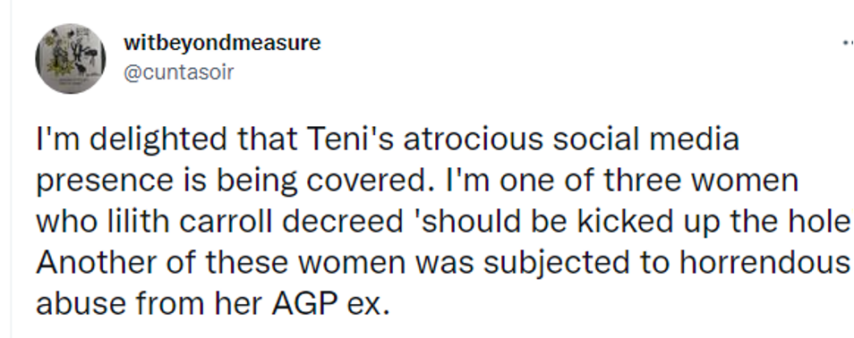 In what might appear to be a classic case of forgetting to observe the old dictum Never Bite the Hand that Feeds, TENI activists were accused of engaging in online abuse of persons associated with the NGS which was the conduit for some €1.24 million of your money to this business as part of the promotion of “trans training.” This is only part of the large amount of cash trousered or skirted or whatever by these people over the years.