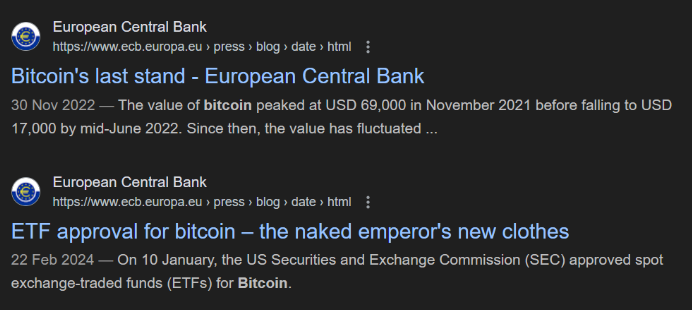 The ECB failed to predict the inflation that followed years of easy money policies during the Covid-19 pandemic, and later overestimated how quickly it would recede. Quantitative easing, undertaken in the name of financial stability, benefitted certain segments of society at others’ expense. The price increases which were squarely blamed on exogenous factors have yet to revert to baseline levels – which one would logically expect if they bore no relation to monetary policy as we are assured. During this period, the ECB had the excess institutional brainpower to run a remarkable series of what can only be described as ‘hit pieces’ on Bitcoin – something rarely encountered with other assets or currencies.
