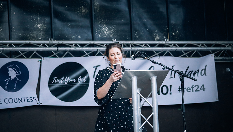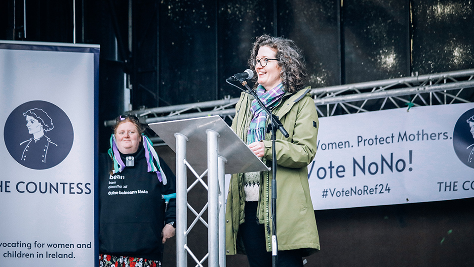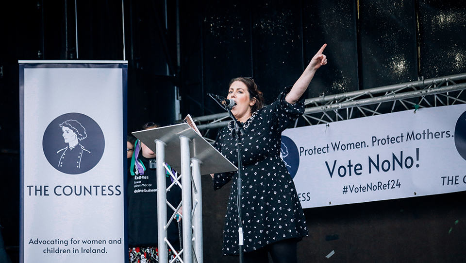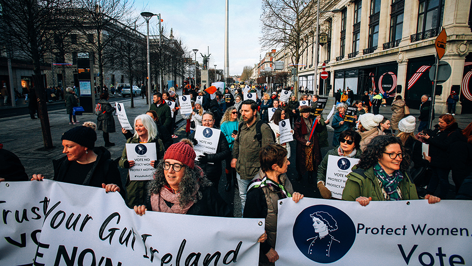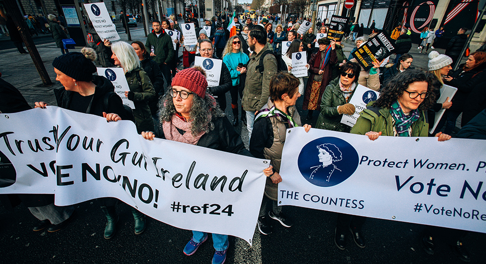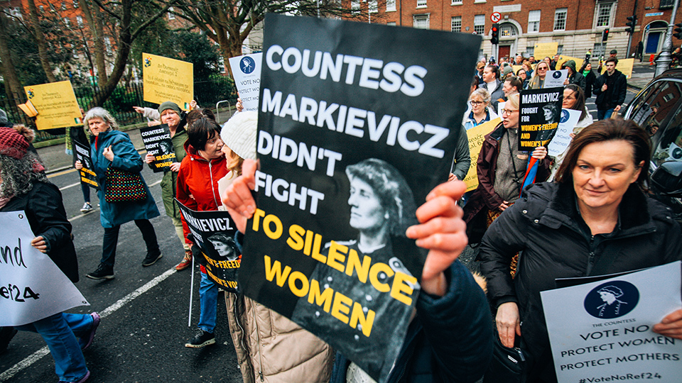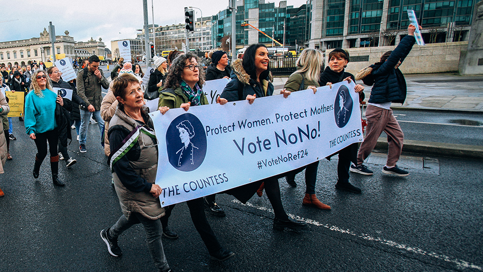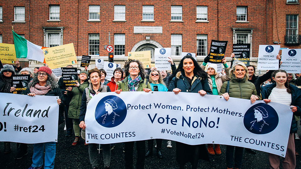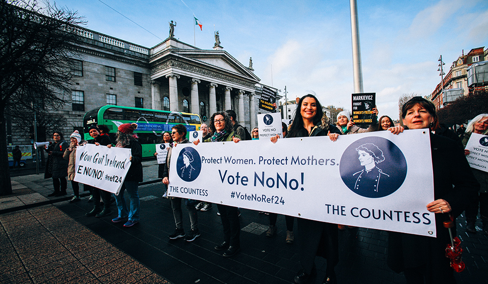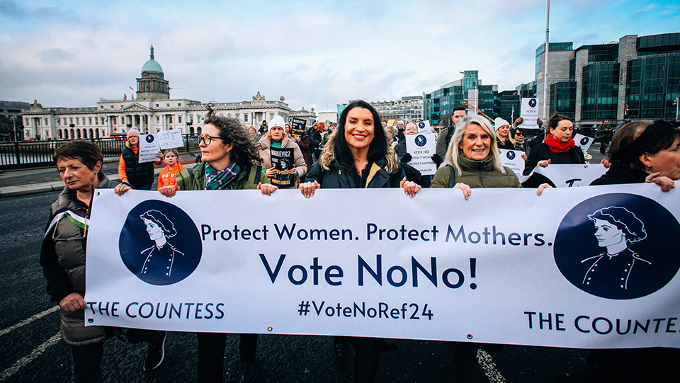 On February 3rd, the Countess marched through Dublin city centre calling on the electorate to reject the governments referendums on the 8th March by voting NO in voth referendums